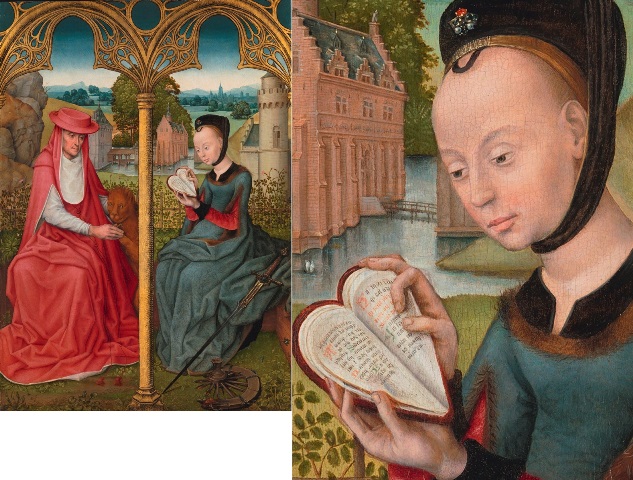 As far as I know there are three paintings with heart-shaped books. Two of them are rather familiar, you find them all over the internet. The two paintings are almost similar, both painted around 1480 by the same painter, know as the ‘Master of the View of St Gudula’.1 Both are probably the right wing of a devotional diptych.