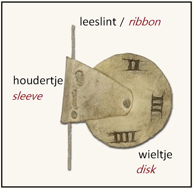 - Een wieltje van perkament met cijfers of letters dat draait in een houdertje. Op enkele wieltjes is versiering aangebracht maar dit is zeldzaam.